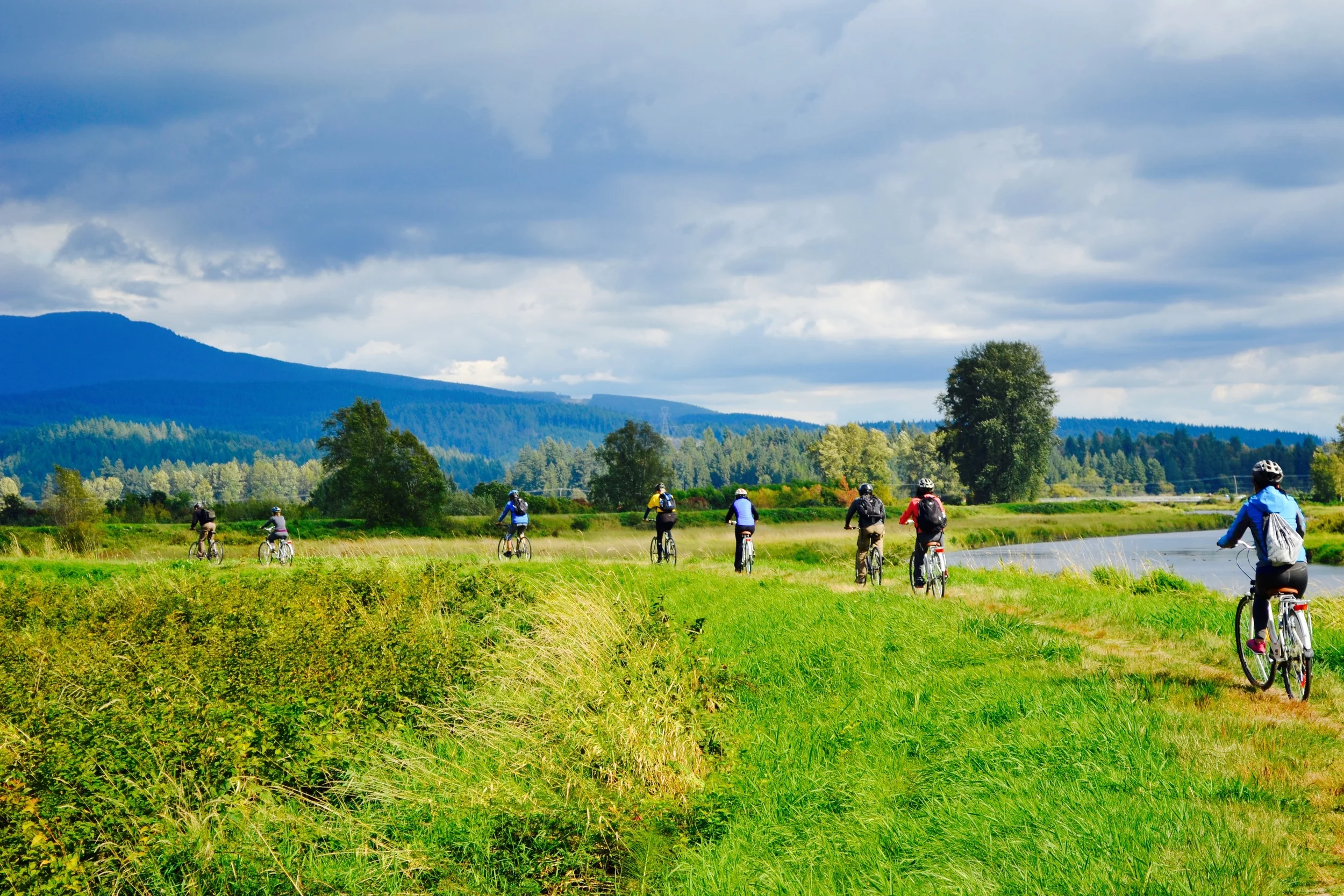 Pitt meadows is located in the lower Fraser valley, 50 km from downtown Vancouver and surrounded by the glorious mountains of Golden Ears and Pinecone Burke Provincial parks. We are delighted to be the sole tour operator with access to the stunning Trans Canada Trail located at Pitt Meadows, BC. One can appreciate the colourful surrounding farmland, fauna and blooming meadows as we pedal along the magestic trail. Following our cycle, we will relax and enjoy refreshments while hopefully enjoying in the warm summer sun.