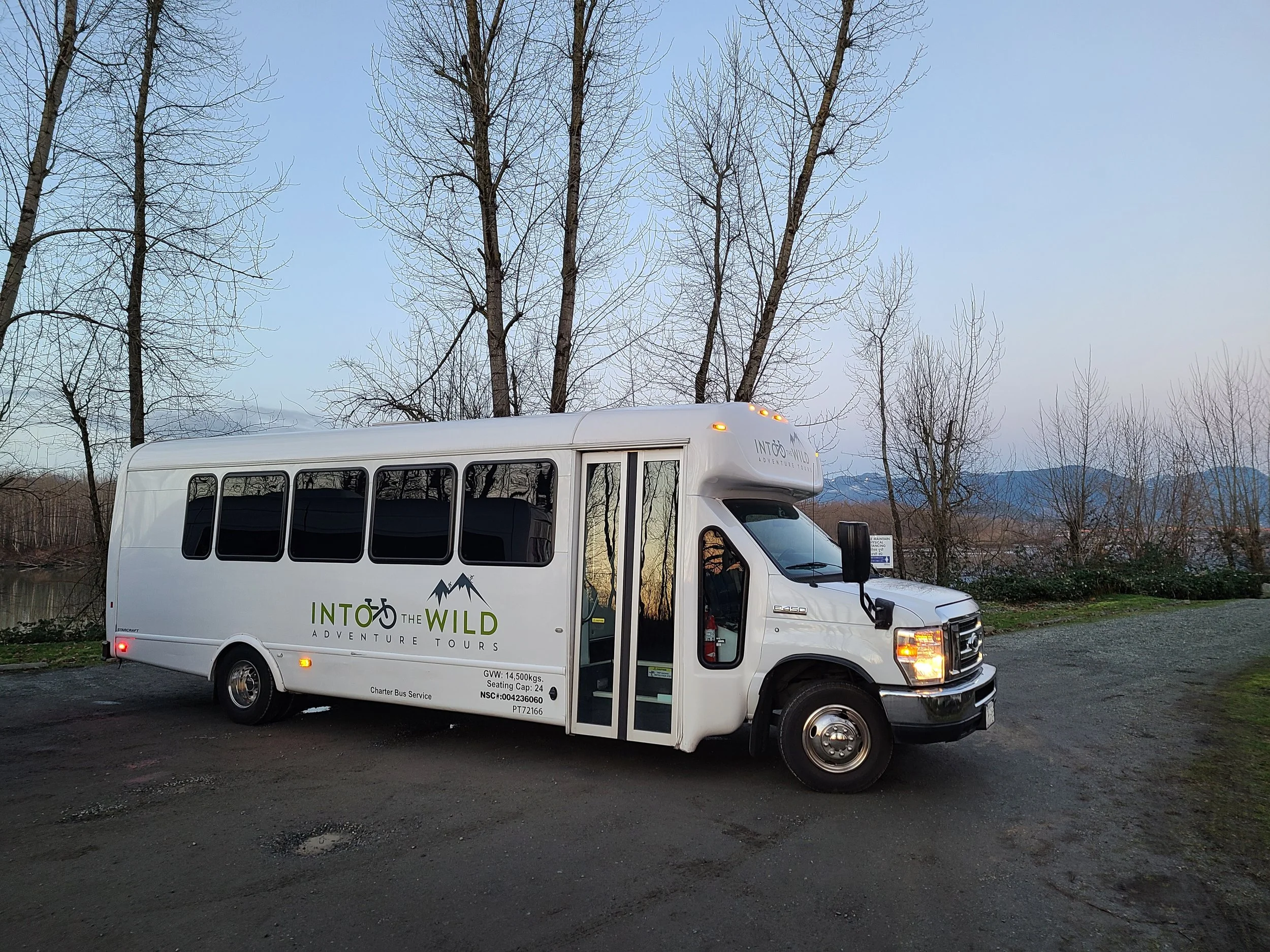 24 Passenger Ford E450 with space for 20 medium/large suitcases or a mix of ski/snowboard gear and carryon cases for up to 24 people.