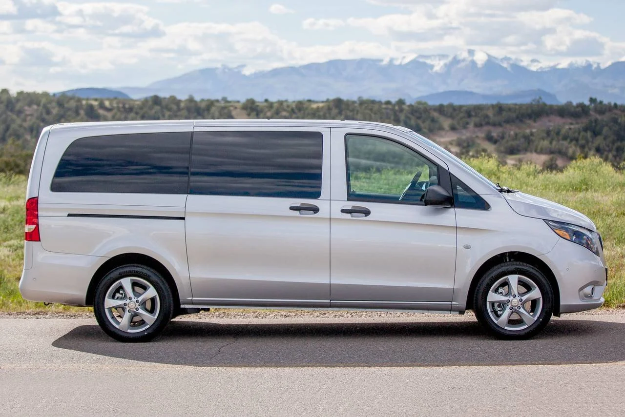 8 Passenger Mercedes Benz Metris with space for 8 large cases. (If you have ski or snowboard gear please let us know so we can see what fits in the van as space is limited).